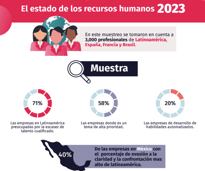 El estudio revela que el 71% de las empresas en Latinoamérica se encuentran preocupadas por la escasez de talento cualificado, y para el 58% de ellas, este es un tema fundamental o altamente prioritario. Además, solo el 20% de las empresas tienen procesos de desarrollo de habilidades automatizados, lo que indica un área de oportunidad significativa en términos de digitalización y optimización de los recursos humanos.