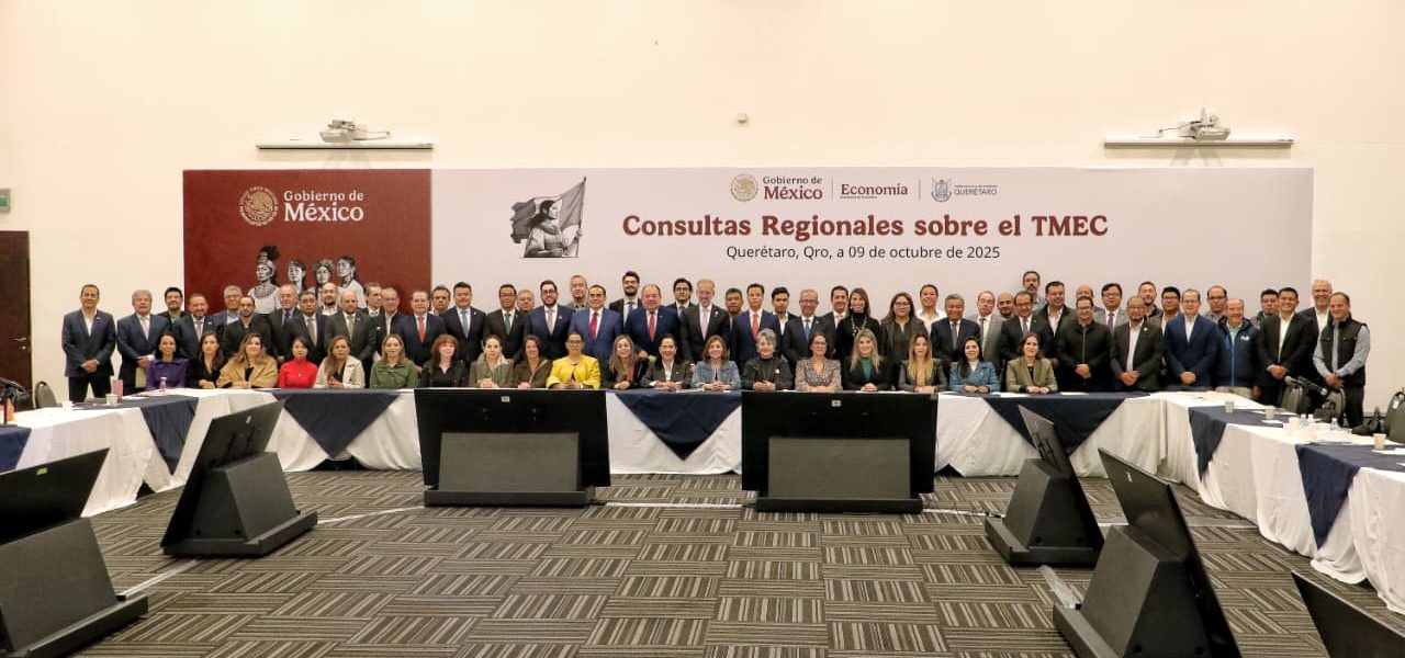 Con autoridades federales, estatales, líderes empresariales, académicos y sindicales, Querétaro fue sede de una sesión de las Consultas Regionales del T-MEC, en la que se recabaron propuestas para la revisión del tratado en 2026.